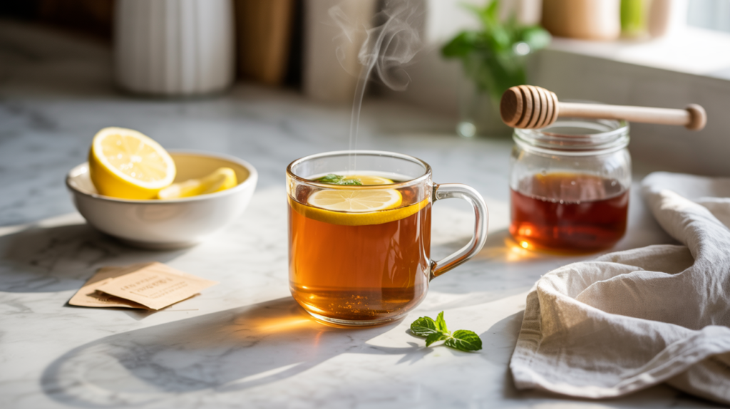 - Naturally soothing: Warm tea, citrus, and honey help comfort sore throats